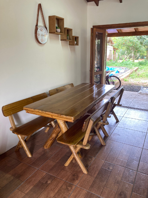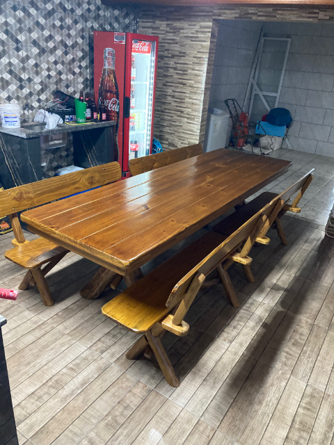 CONJUTO COM MESA 2M x 0.80M E 4 BANCOS DE 1M